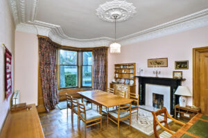 The formal dining room, ideal for entertaining, benefits from an abundance of natural light streaming through the large window that frames a pleasant view of the front garden. This bright and inviting space offers a beautiful starting point for conversion in to a functional and flexible multi-purpose room.