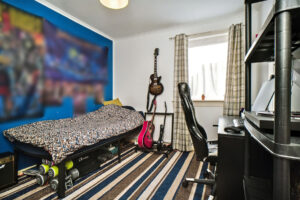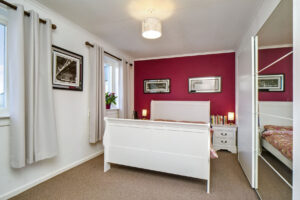 We see there are two double bedrooms at the rear of the property and master at the front. The first bedroom, though the smallest of the three, is a bright and inviting space, again with built in storage space. The second, like the other bedroom, this room has a welcoming feel, likely due to a combination of factors, including the neutral decor, natural light, and ample space.