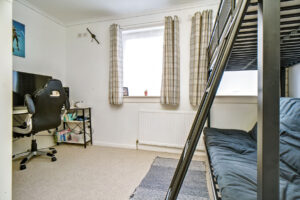 The principal bedroom, which is large enough for a possible conversion idea to bring the principal bathroom on to the upper level or to create an en-suite, is beautifully decorated throughout with scenic views out to the Firth of Forth and beyond.