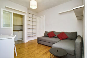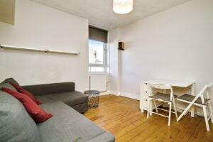 The interiors feature a well looked after communal hallway leading up to the top floor. The accommodation is presented to the market in move-in condition. The entire space has been recently refreshed with a crisp coat of paint throughout. The entrance hall has an abundance of storage space and provides access to all rooms. Upon entry, the shower room is straight ahead with the bedroom on the left hand-side, and the lounge and kitchen on the right.